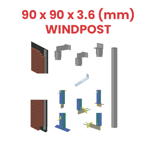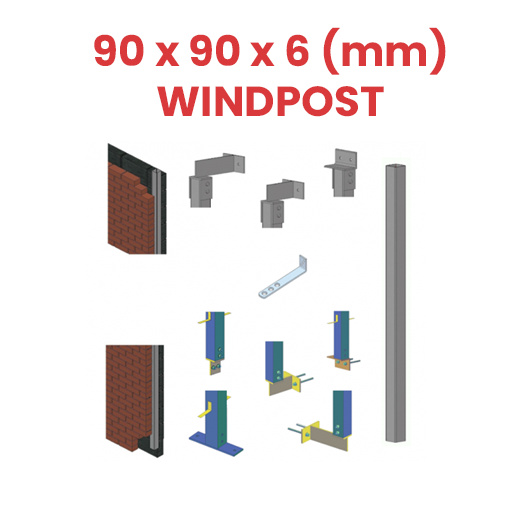 Wind posts span vertically between floors then fixed with specifically designed top and bottom connection plates to suit most requirements – e.g. bolting to a timber joist at the top and concrete floor at the bottom, wind posts may be used for example either side of a bi-fold type door or into the cavity of long un-buttressed walls.